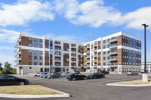 Apartment complex constructed using cast-in-place concrete construction. These buildings are 6 storey above grade with 1 level of underground parking and includes amenity spaces on the main floor and commercial tenant spaces. There is a total of 204 residential units.