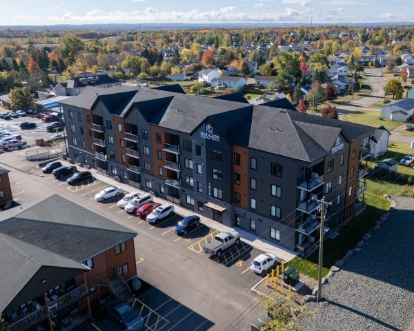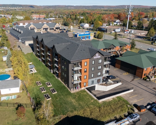Apartment complex constructed using prefabricated wood panels and joist systems. This building is a 4 storey above grade with 1 level of underground parking and has a total of 44 residential units.